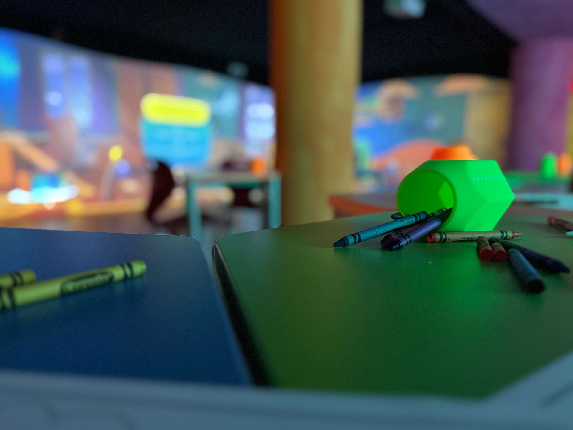 In questa vasta area, i bambini avranno la possibilità di colorare disegni che, come per magia, si trasformeranno in parte di uno scenario fantastico. Basta mettere il disegno sotto lo scanner istantaneo per osservare come prende vita, muovendosi e interagendo con l’ambiente proiettato sulle pareti.