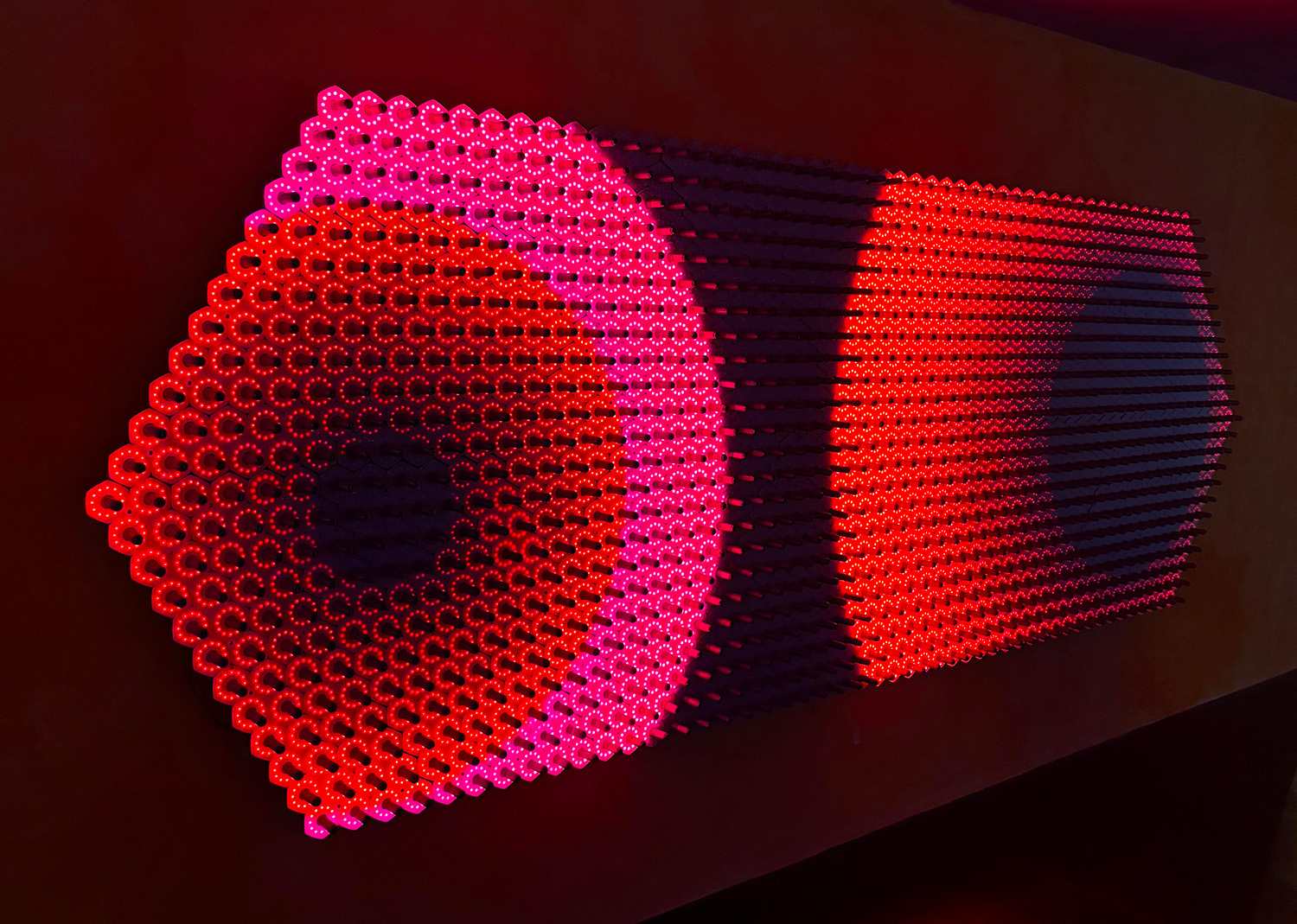 Con un’estensione di 7 metri quadrati, questa installazione permette di esplorare, su scala macroscopica, il movimento di una particella quantistica, svelandone le affascinanti e misteriose stranezze. L’installazione è composta da oltre 1000 molle sensibili al tatto, 12.000 LED indirizzabili individualmente, circuiti stampati e legno.